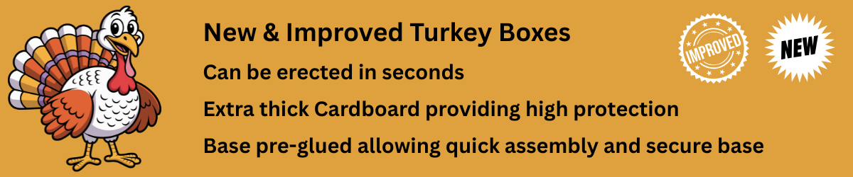 Quick view sku: 999MEDTWIN-200 Pack of 200-Medium Heavy Duty Turkey Crown Boxes (395 x 260 x 160mm ) Pack of 200-Medium Heavy Duty Turkey Boxes (395 x 260 x 160mm ) Please Order Early For Christmas to avoid disappointment We have introduced a Heavy Duty Twin Wall Medium Turkey Box Twin Wall for all over additional strength AT NO EXTRA... MSRP: Now: £268.00 Pre-Order Now Compare Compare Selected
